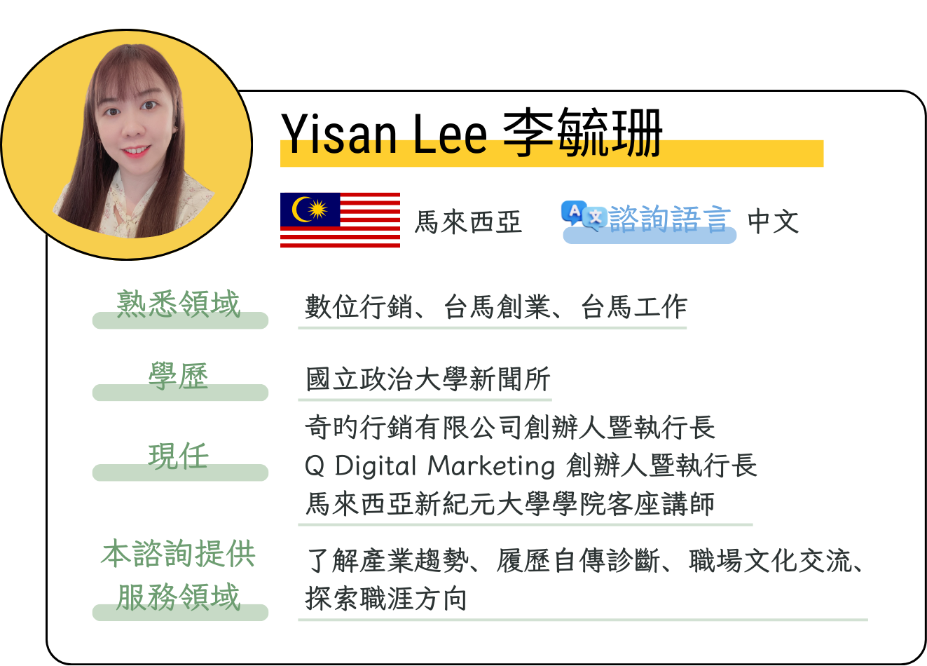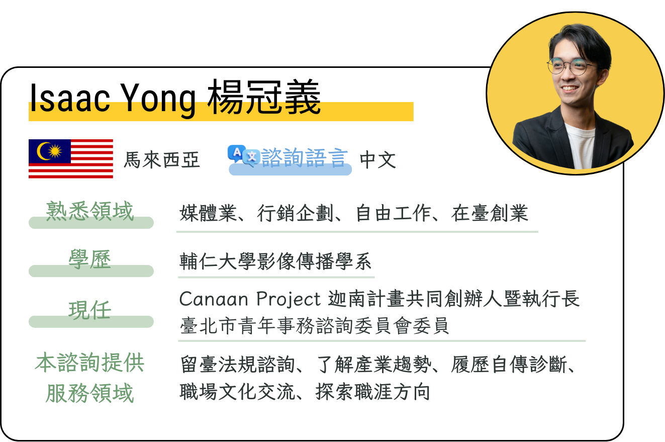 💡此就業輔導諮詢服務適用對象為本校在學之國際生(僑生、港澳生及外國學生)💡